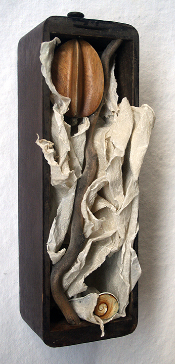 ©Catherine Nash Smoke, 2020 encaustic painting in a vintage box with original smoked sides, wax dipped leaves, found wood. 7”w x 20”h x 4”d $975 available through the Bowersock Gallery 508-487-4994 info@bowersockgallery.com |